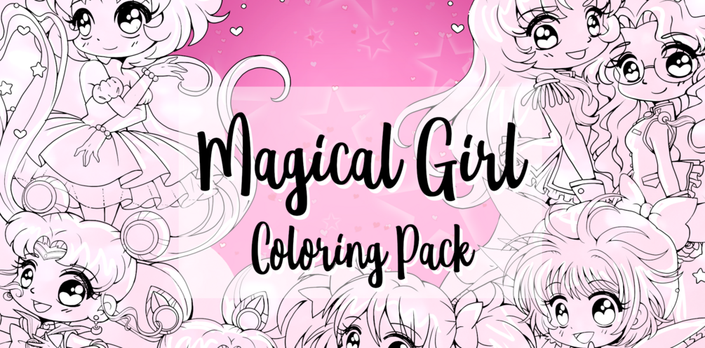 Try out one free coloring page from this pack available for download on my website at www.yampuff.com/magical-girl-digital-coloring-pack/