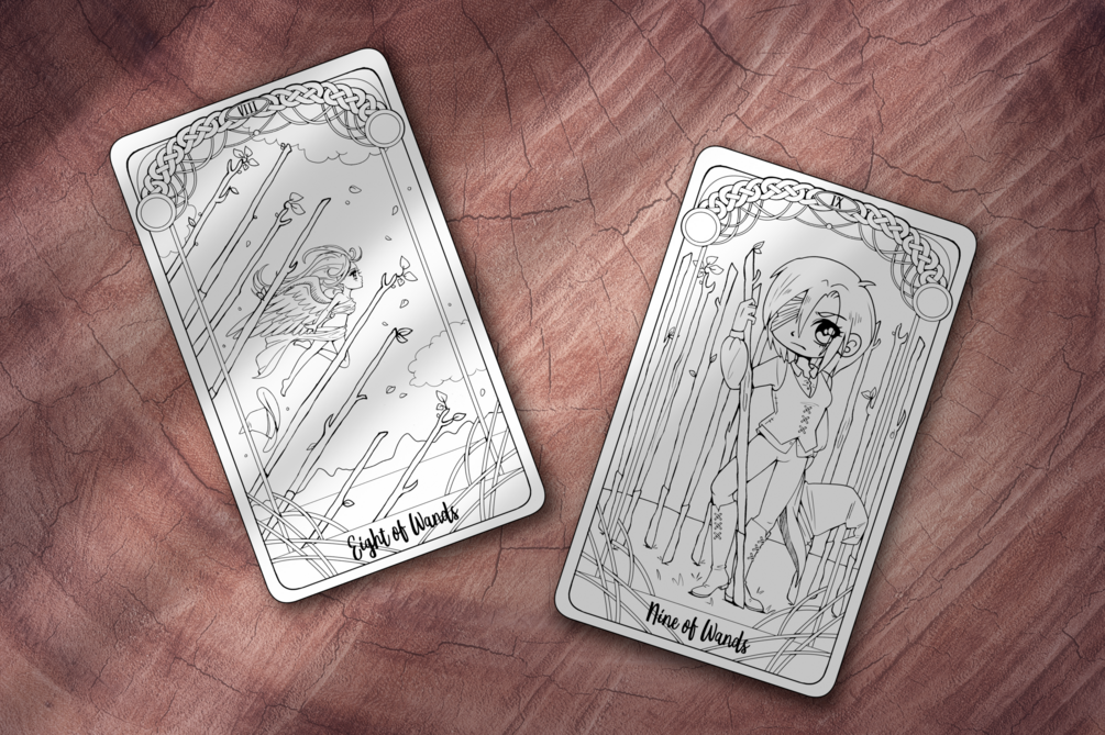 The Chibi Tarot Coloring Pack is YamPuff’s take on the tarot, re-imagined as chibis. This pack, Minor Arcana Wands Suite, features the whole 14 card set of the Wands Suite; the Ace till the 10th of Wands and the Page, Knight, Queen and King. As a little bonus, the meaning of each card is included, both the upright and reversed readings.