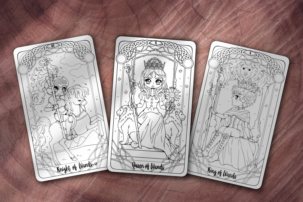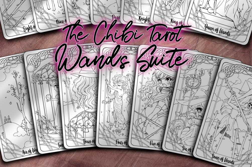 Chibi Tarot Coloring Pack: Wands Suite – Instant Digital Download – 14 Illustrations to Color